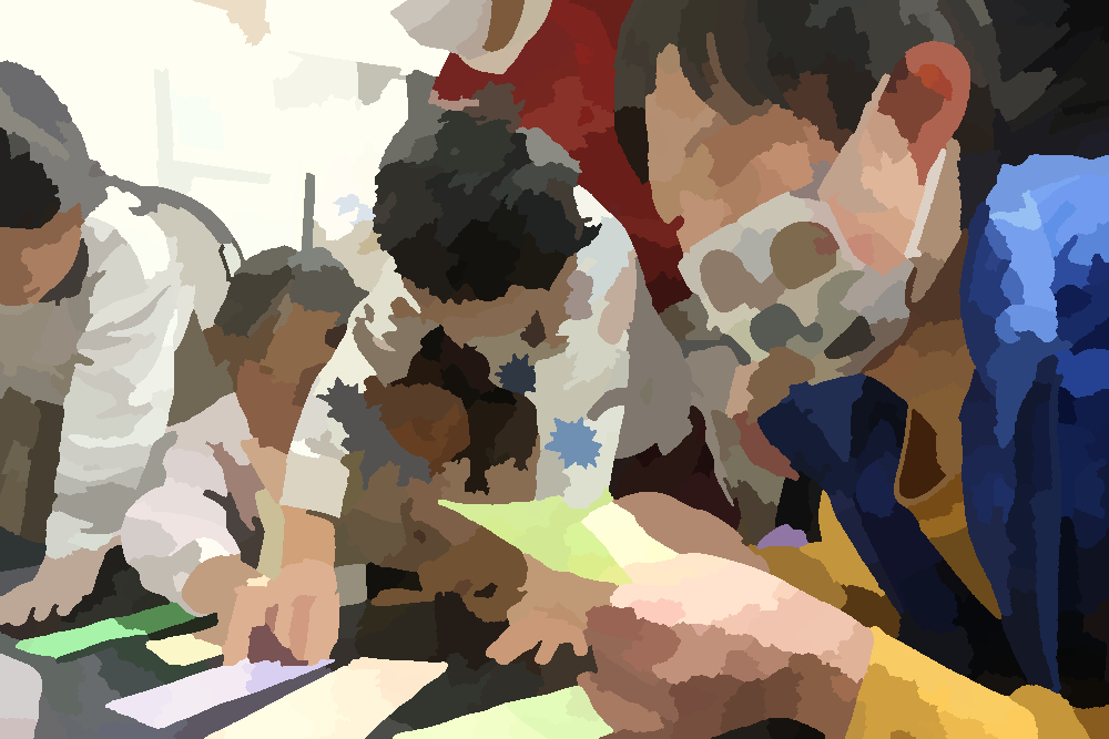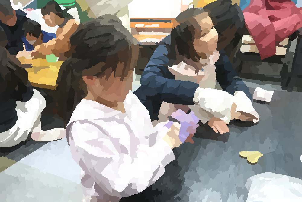 2026年2月8日(日)はてらこやeトコの日でした。あちょぱさんたちの手作りの時間は「鬼のブレスレット」作りです。材料費0円で、個性的な鬼作品がうまれました。
