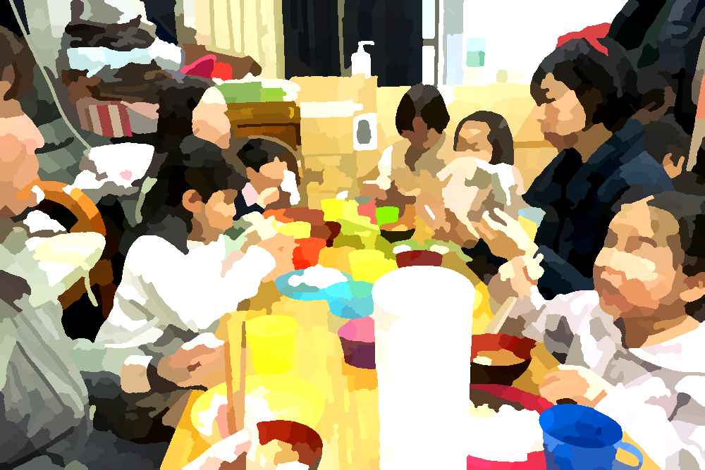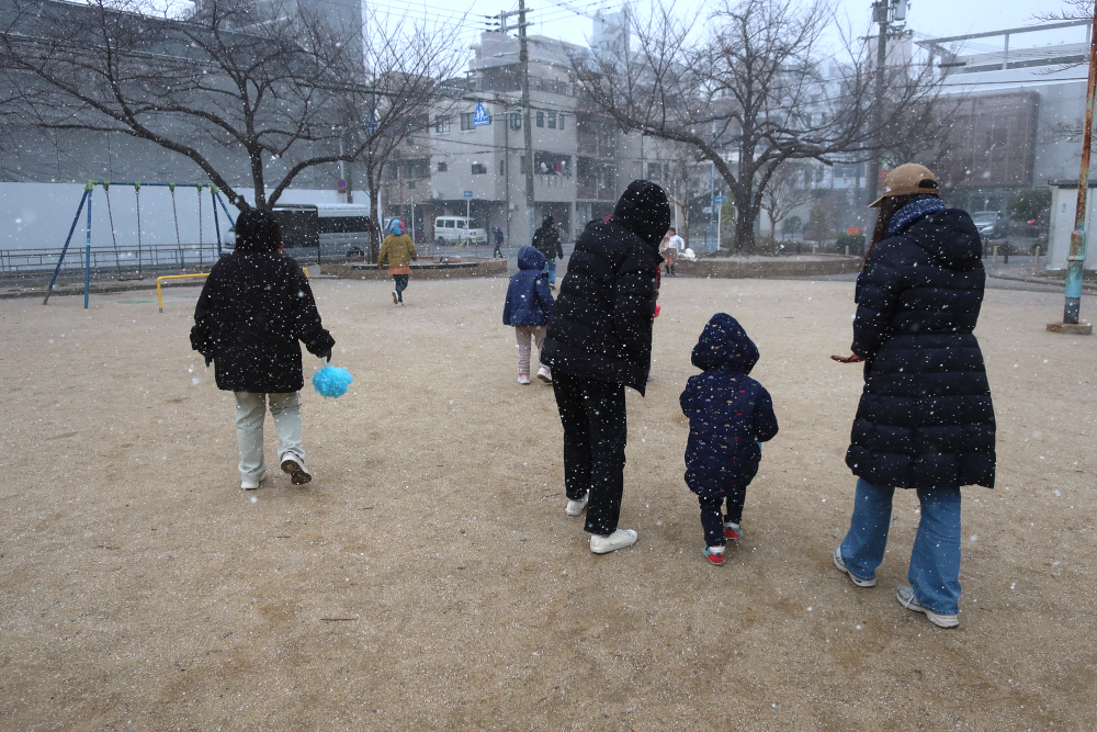 お昼にごまご飯&具沢山味噌汁をたくさんお代わりした後は、こどもたちの希望でいつもの通り、寒い公園へ。ひとしきり遊び、雪がたくさん降り始めた頃に帰りました。